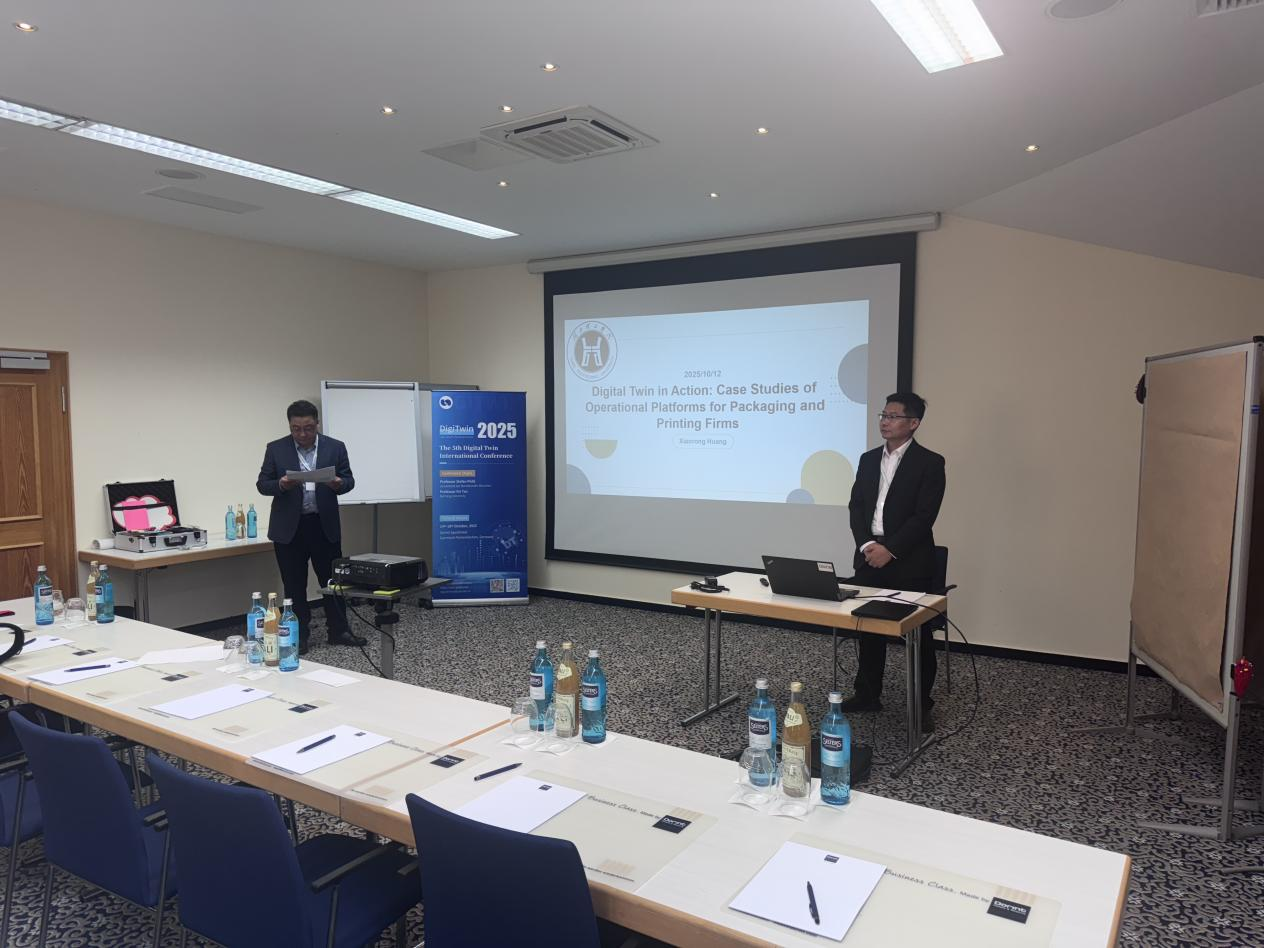 本网消息 2025年10月14日至18日,第五届数字孪生国际会议(DigiTwin 2025)在德国巴伐利亚州,加尔米施-帕滕基兴顺利召开。167net必赢,必赢手机app副院长黄小荣博士应邀参加,并做了题为“Digital Twin in Action: Case Studies of Operational Platforms for Packaging and Printing Firms”的报告。